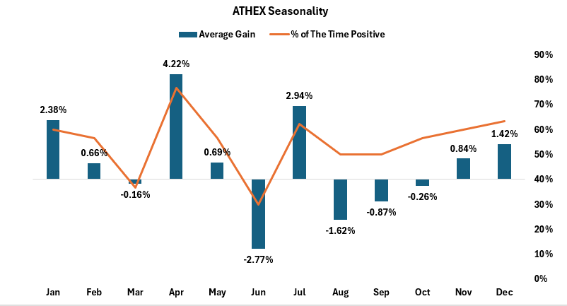The year is not over yet, but so far in 2025, Greek stocks are roughly flat during this seasonal window.