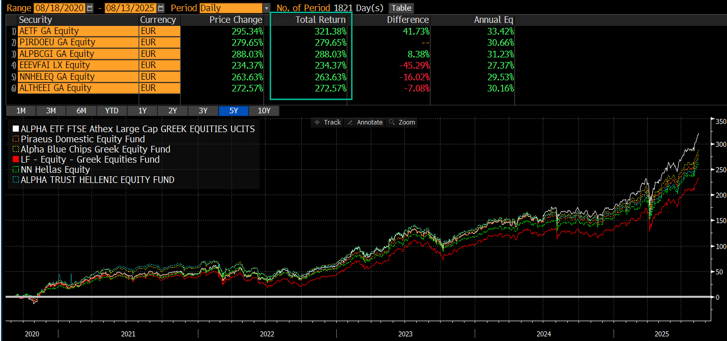 Fees are another drag. Some of the largest active funds in Greece charge as much as 2.5% annually for retail investors, while institutional classes may pay around 0.5%. Compare that with the Alpha ETF, which costs just 0.37% for everyone, the cheapest equity vehicle in Greece. When you’re paying high fees, even if the manager keeps pace with the market, your returns still trail after costs. The more layers between you and the market including brokers, platforms, managers, banks.. the less you get to keep.